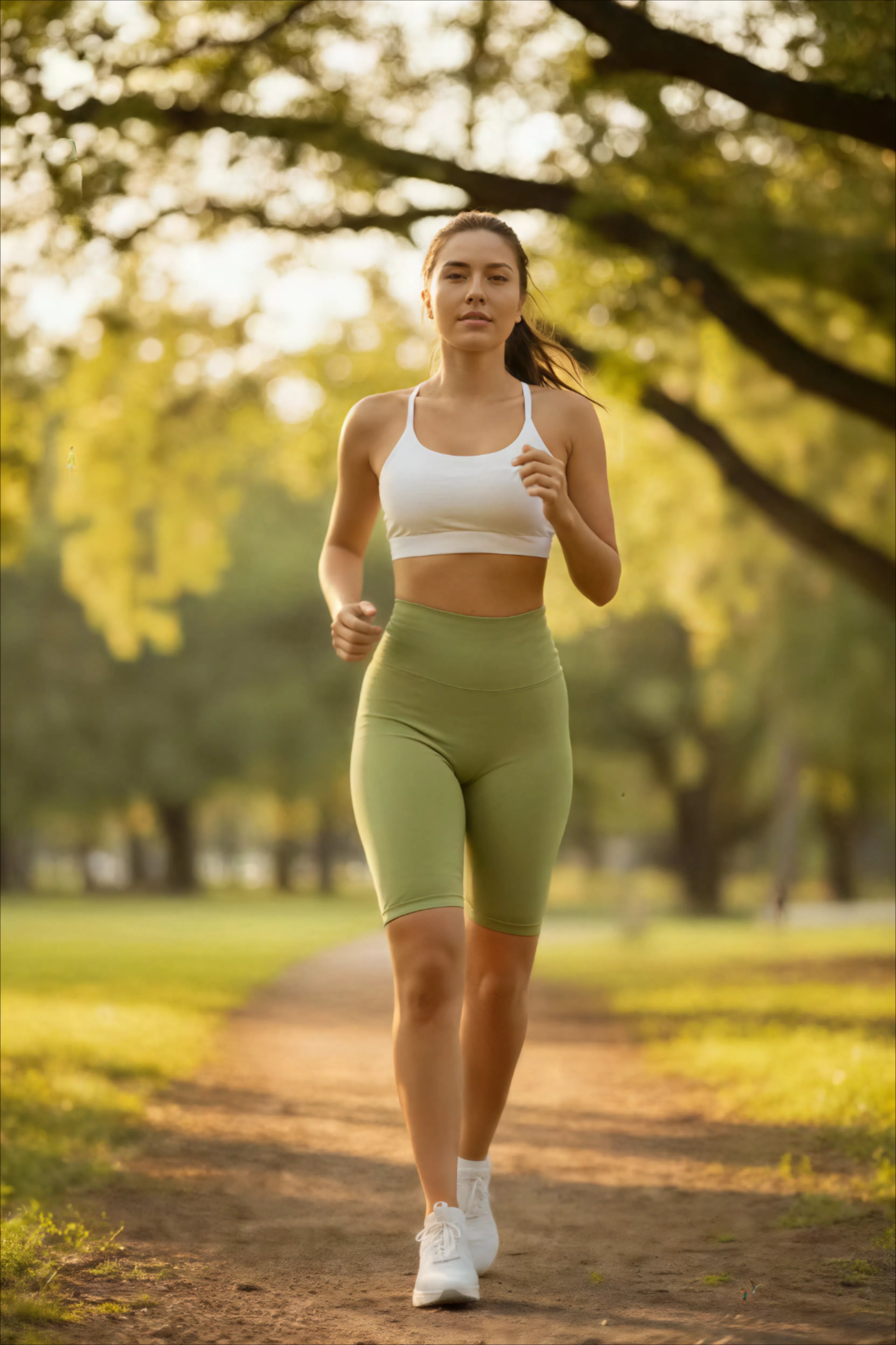 Green athletic shorts with white top on a light gray background, featuring text labels on design elements.
